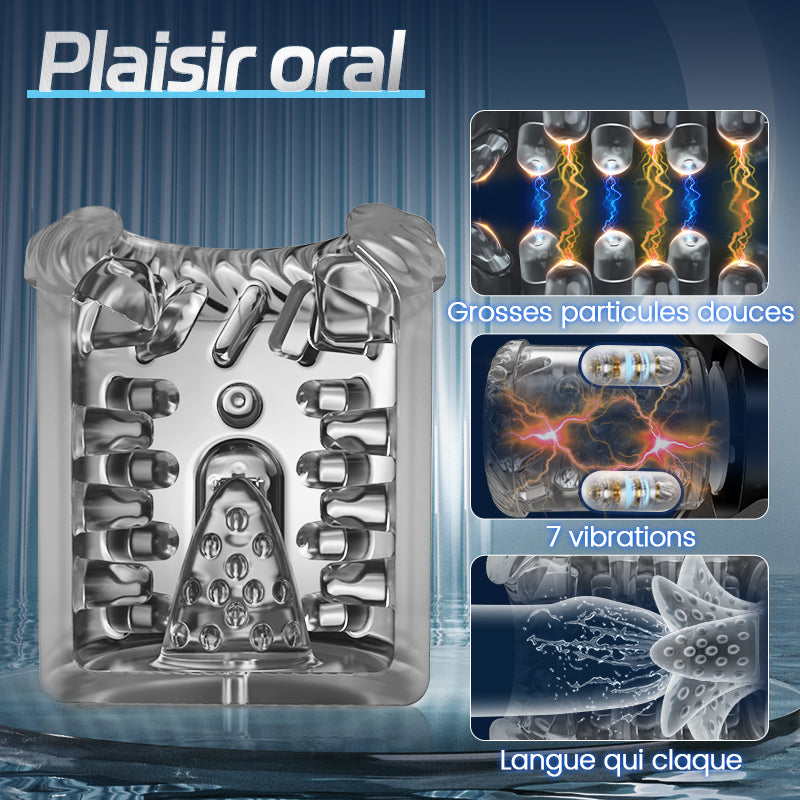 Aisia -3 en 1 Masturbateur pour sexe oral 4 aspirations 5 modes de poussée rotatifs